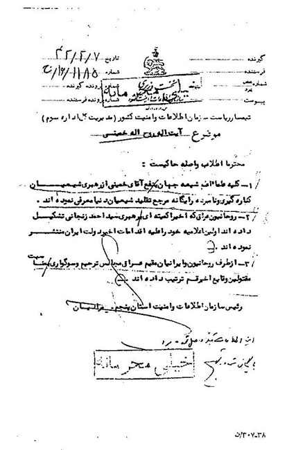 براساس سند زير، ساواك به حمايت كليه علماي اعلم شيعه جهان از امامخميني اعتراف داشته است.