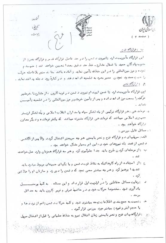 ۶) سند عراقی (۳)انتصاب فرمانده جديد ارتش عراق براي دفاع از خرمشهر: