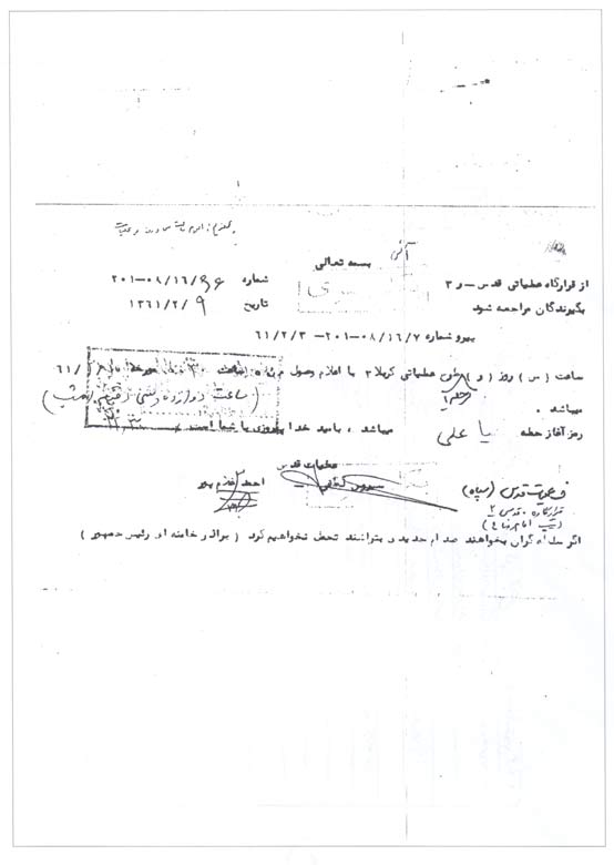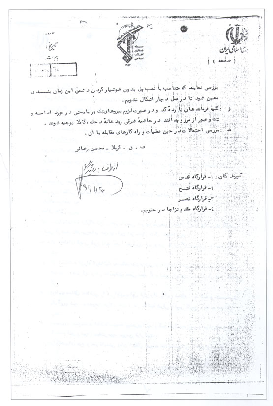 ۴) سند عراقی (۱)گزارش حمله نيروهاي خودي در مرحله سوم عمليات بيت المقدس: