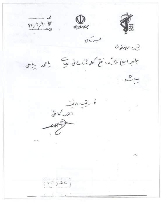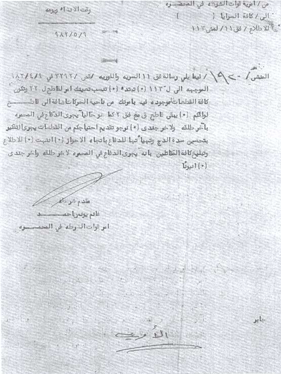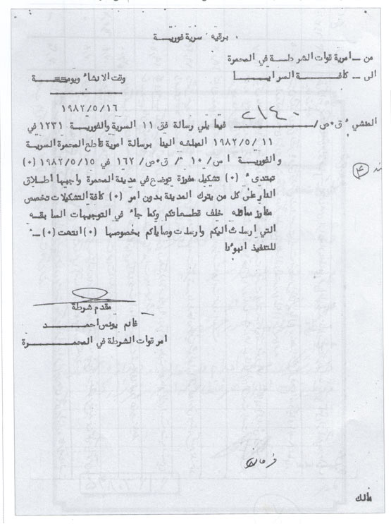 غانم يونس احمد، فرمانده پليس خرمشهر، دستور تشكيل جوخه اعدام را صادر كرده و در آن تأكيد ميكند هر كس در دفاع از خرمشهر كوتاهي كند و قصد فرار داشته باشد، اعدام ميشود: