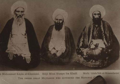 علماي برجسته نجف از راست : آقا شيخ عبدالله مازندراني ، حاجي ميرزاحسين تهراني و آخوند ملا محمد كاظم خراساني
