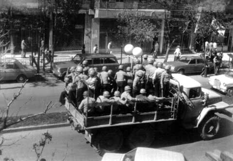 | نفربرهاي نظامي رژيم شاه در خيابانهاي تهران |
